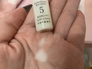 実際使ってみたら、とってもコクのある濃厚な乳白色の液なので、出しずらい時は少しボトルを押すように使ってみました。