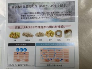 こちらはこだわりの温泉水とナノセラミドの「超浸透型ナノセラミド化粧水」です。